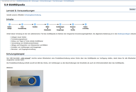 Bereits bei der Auslieferung stellt GUARDipedia alle Informationen rund um das Qualitäts- und Produktions-Management des Standardsystems GUARDUS MES bereit. Darüber hinaus konzentriert sich das Wissens-portal auf die aktive Anwenderinteraktion. So haben Kunden in geschützten Portalbereichen die Möglichkeit, kundenspezifische Konfigurationen einzupflegen und mit bereits bestehenden Informationsbereichen direkt zu verknüpfen – von Prozessbeschreibungen über individuelle Parametrierungen und Schnittstellendefinitionen bis hin zu Projektdokumentationen und Schulungsunterlagen.